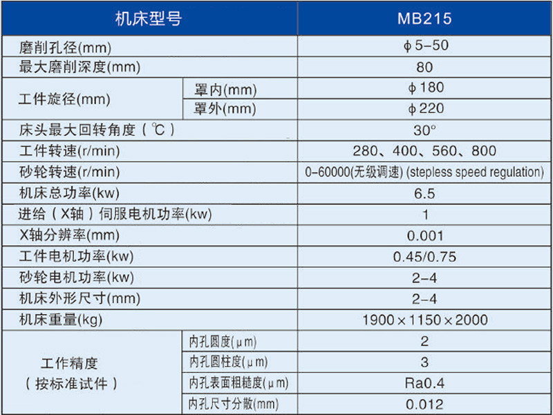 ●本機床能磨削φ50mm以下的內圓孔、圓錐孔。